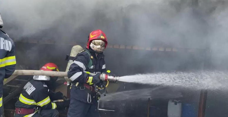 FOC: Incendiu violent la un service auto din cartierul băimărean Ferneziu. O persoană primește ajutor medical.